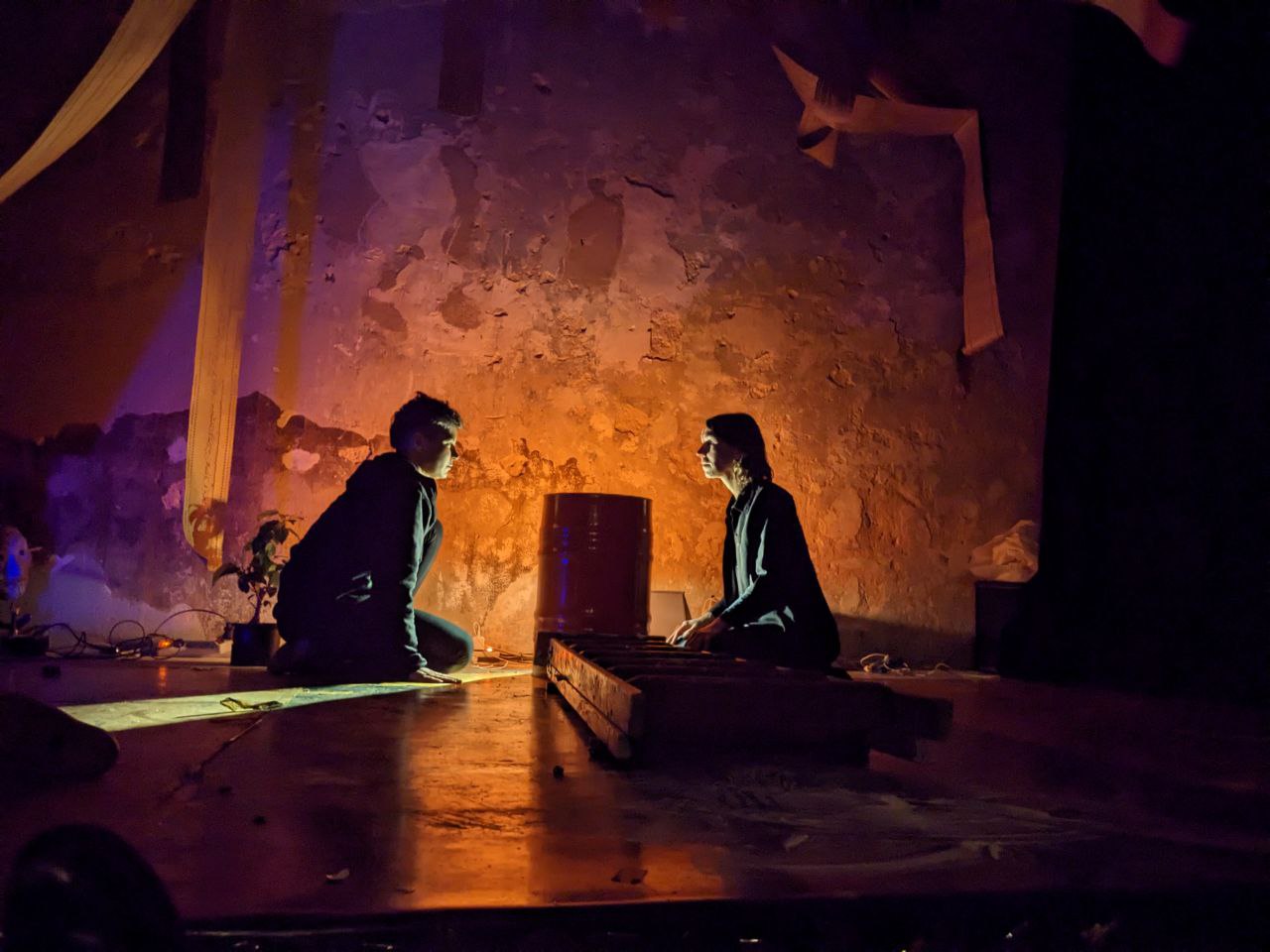 Ein wilder Ritt mit Licht und Schatten, skurrilen Objekten und Bildern. Kompositionen, Klangteppiche und Sounddesigns berauschen das Ohr des Zuschauenden.